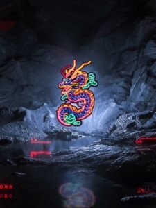 Feng Shui Energy Stickers, Chinese Lucky Dragon Neon Flat Stickers